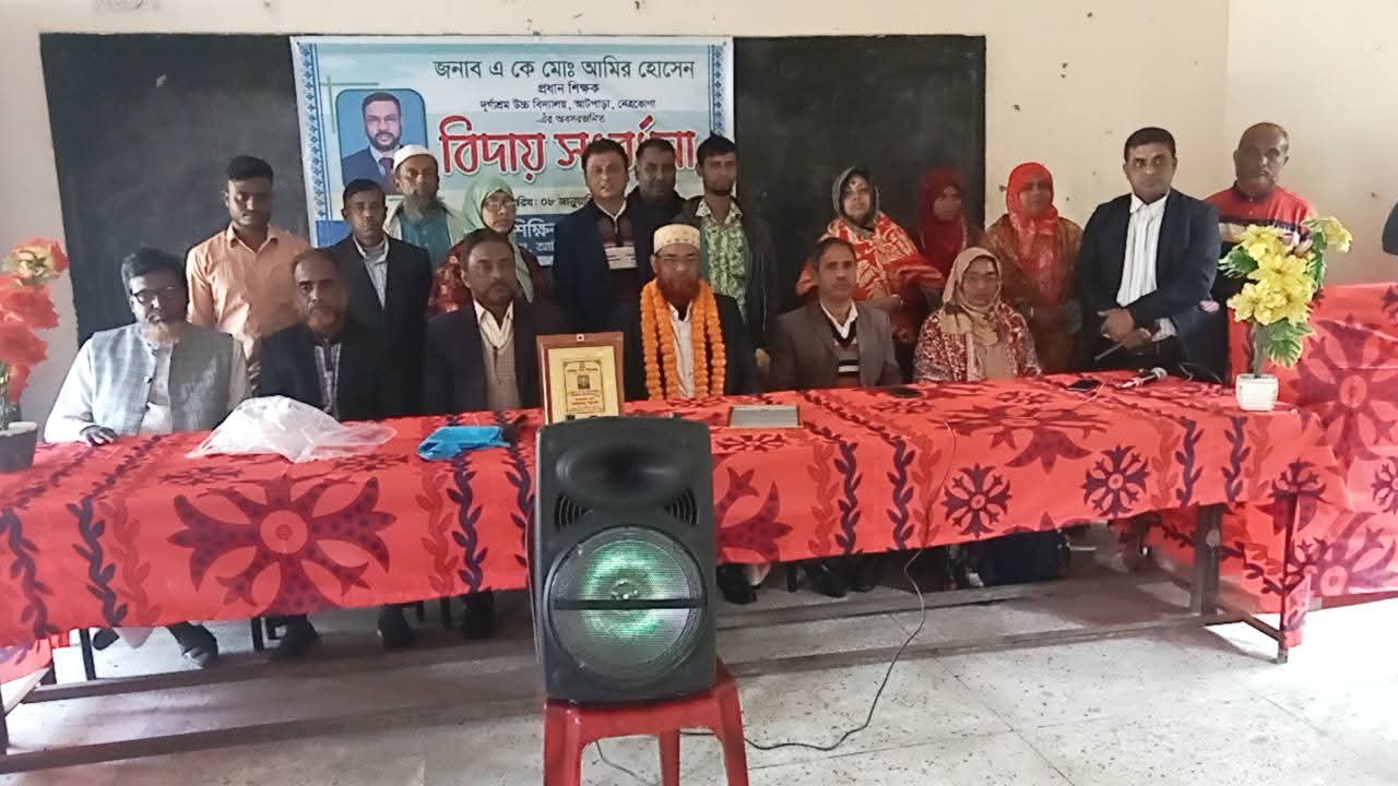 আটপাড়ায় দূর্গাশ্রম উচ্চ বিদ্যালয়ের প্রধান শিক্ষককে বিদায় সংবর্ধনা